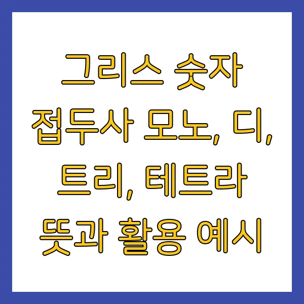 그리스 숫자 접두사는 과학, 기술, 의학, 예술 등 다양한 분야에서 숫자를 나타내는 데 널리 사용됩니다. 특히 '모노', '디', '트리', '테트라'와 같은 접두사는 각각 1, 2, 3, 4를 의미하며, 화합물의 명명, 음악 용어, 도형의 명칭 등에서 핵심적인 역할을 수행합니다. 이 글에서는 이러한 접두사들의 어원과 의미, 그리고 다양한 활용 예시를 살펴보겠습니다. 전문 분야에서 활용되는 그리스 숫자 접두사의 세계를 함께 탐험해 보시죠!