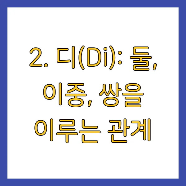 2. 디(Di): 둘, 이중, 쌍을 이루는 관계
