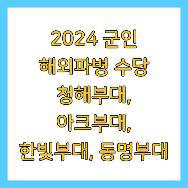 해외파병 부대는 저마다 특수한 임무와 환경에서 활동합니다. 각 부대의 특징을 살펴보는 것은 해외파병 수당 체계를 이해하는 첫걸음입니다.
