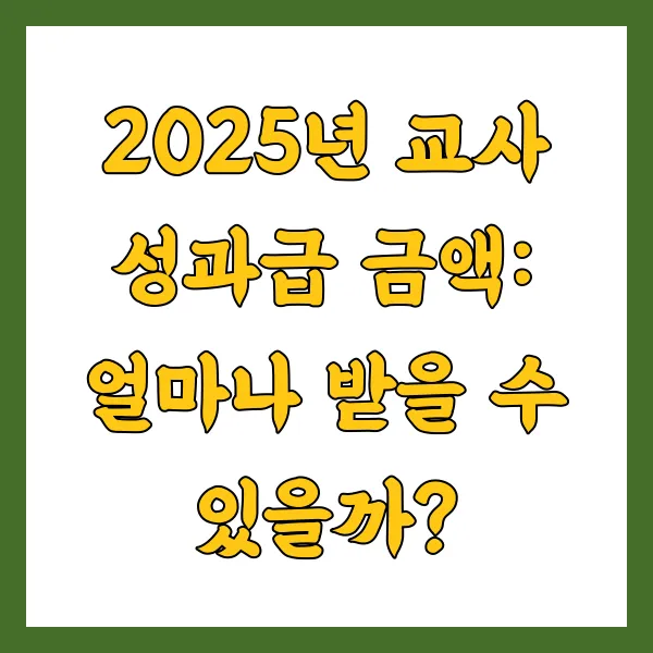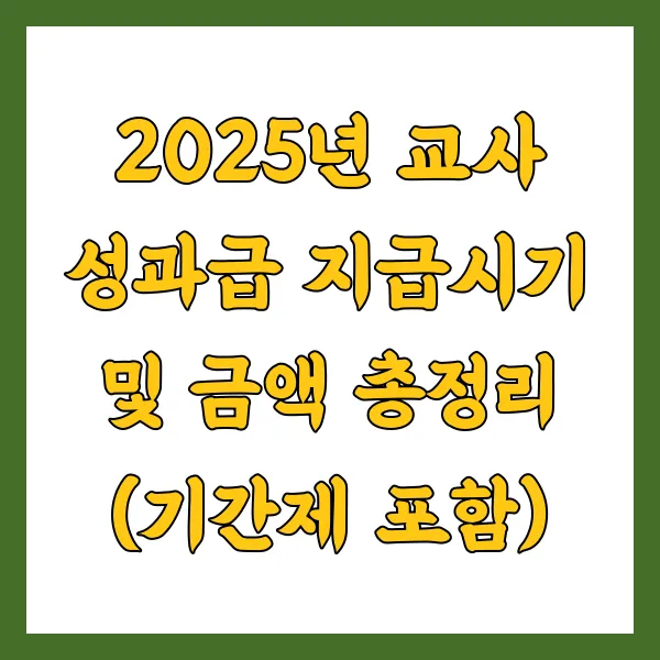 교사 성과급! 2025년에는 어떻게 될까요? 지급 시기와 금액, 평가 기준, 그리고 기간제 교사를 위한 정보까지 모두 담았습니다. 정확한 정보를 통해 재정 계획을 세우고, 성과급 제도의 의미를 되짚어보는 기회가 되길 바랍니다. 궁금증을 모두 해결해 드리겠습니다!