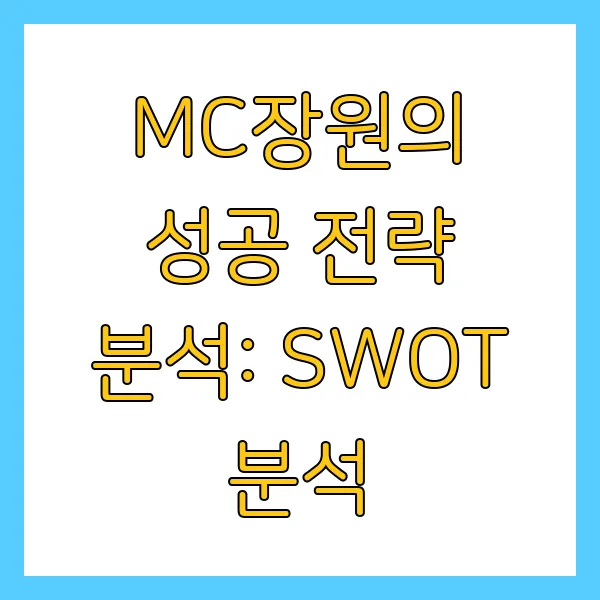MC장원의 성공 요인을 더욱 면밀히 분석하기 위해 SWOT 분석을 활용해보겠습니다.