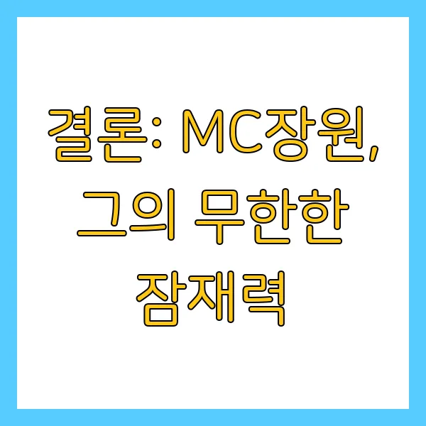 - 탁월한 유머 감각 및 순발력: MC장원은 특유의 유머 감각과 순발력으로 다양한 상황에 재치 있게 대처하며, 시청자들에게 웃음과 즐거움을 선사합니다.